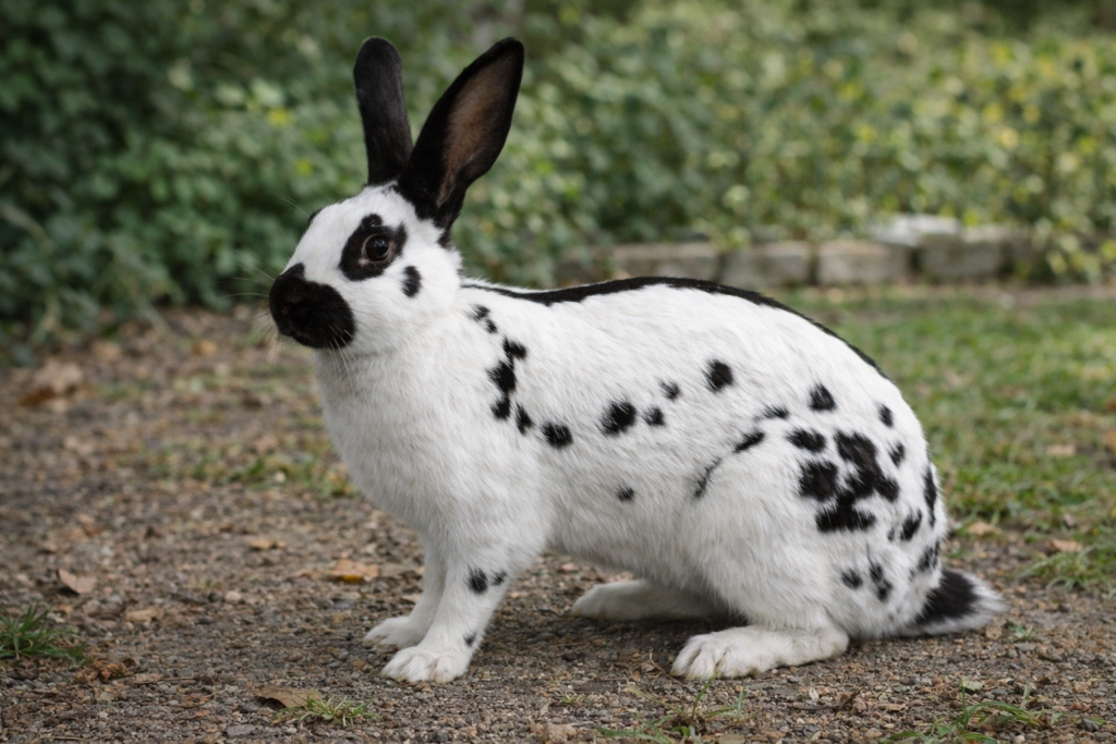 イングリッシュスポットは、白い体に入る独特の斑模様が特徴のうさぎです。